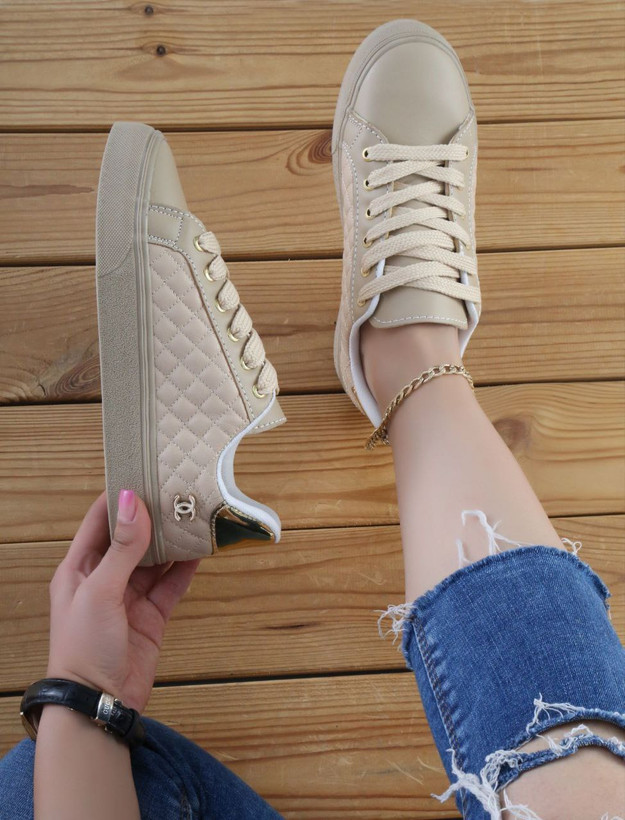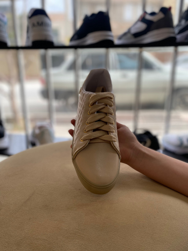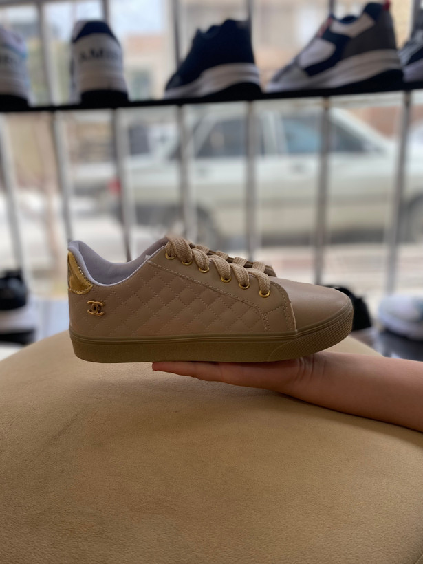 کتونی ونس شنل کرمی زیره لژ کشی راحت رویه چرم سبک و راحت