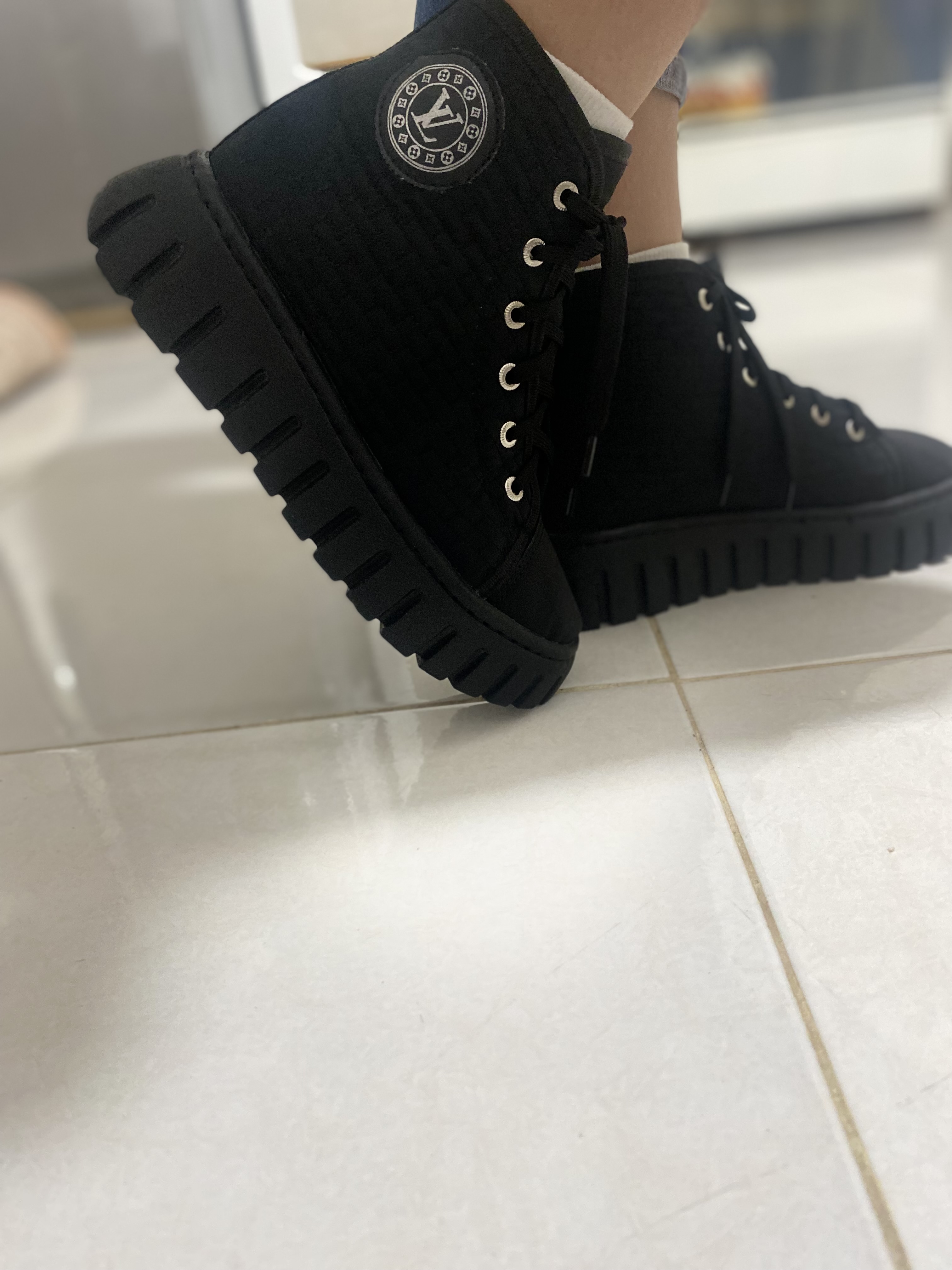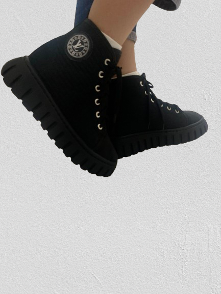 کفش اسپرت ساقدار کاپشنی زنانه مشکی مدل ال وی