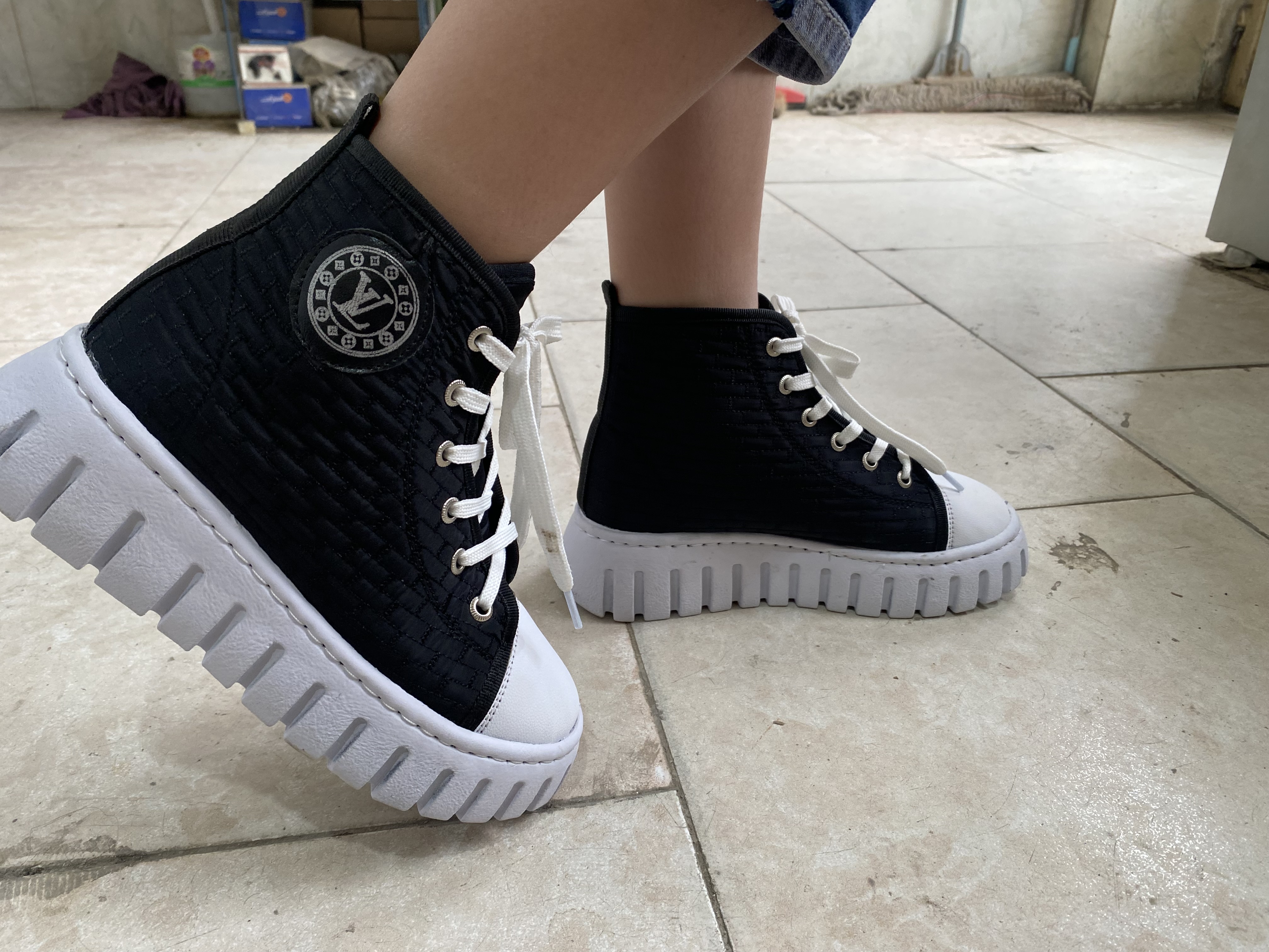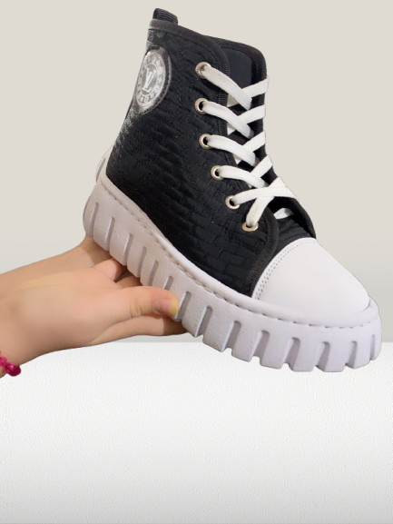 کفش اسپرت ساقدار کاپشنی زنانه سفید مشکی مدل ال وی