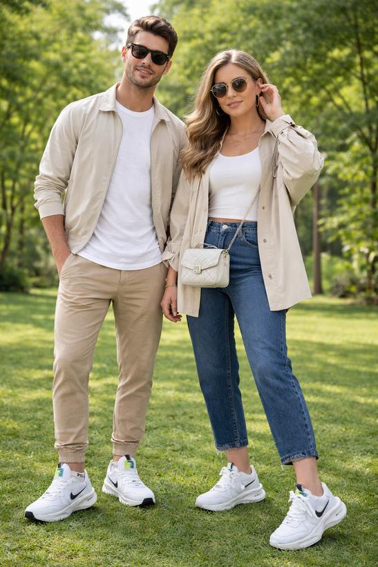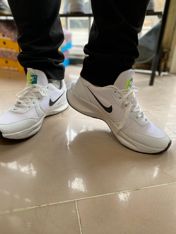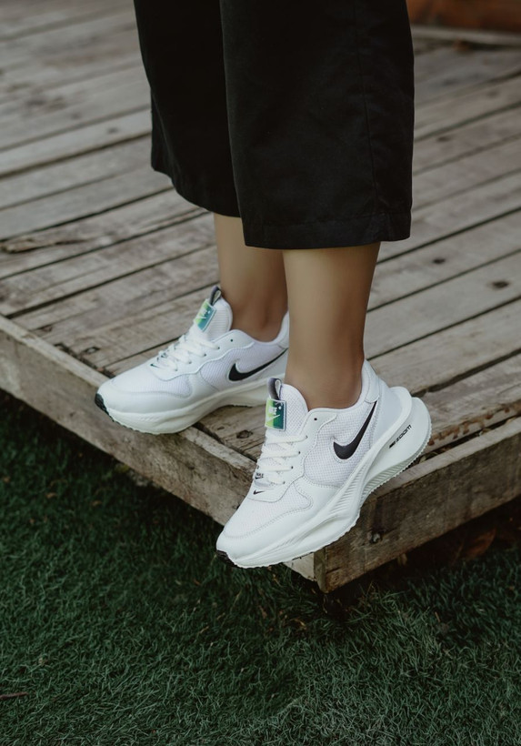 کتانی اسپرت نایک زوم مردانه و میانه بسیار راحت سبک شیک سفید با زیره مشکی